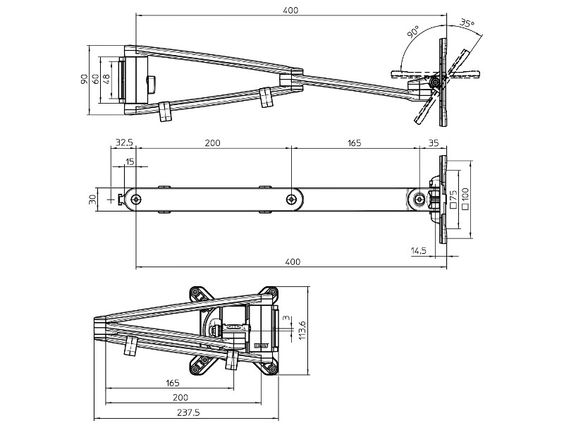 - 2-teiliger Gelenkarm Inklusive Kabelspangen mit Standard-Monitorbefestigung VESA 75x75mm und 100x100mm mm
