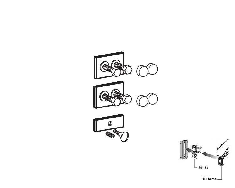 Durch den Ergotron Befestigungssatz werden können Ergotron HD-Arme an Wand-Schienen befestigt werden.