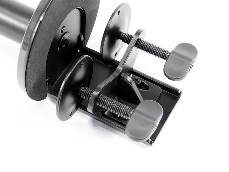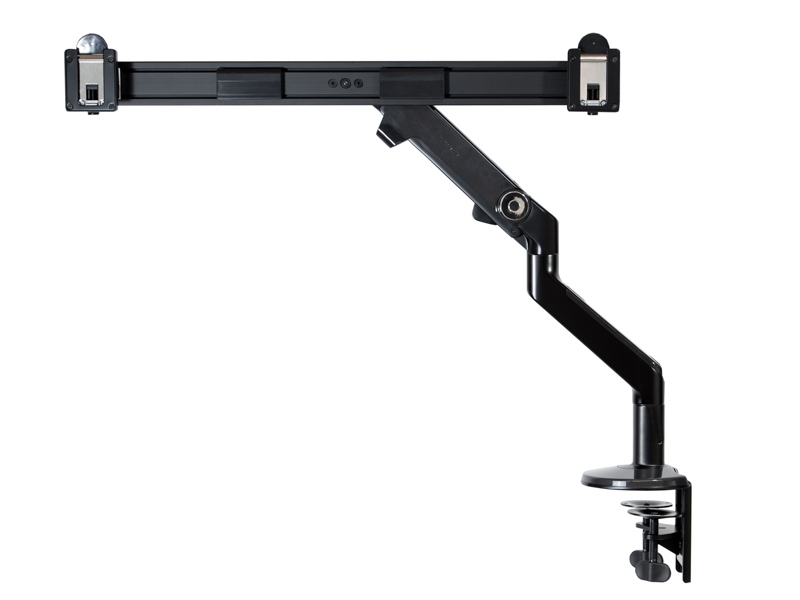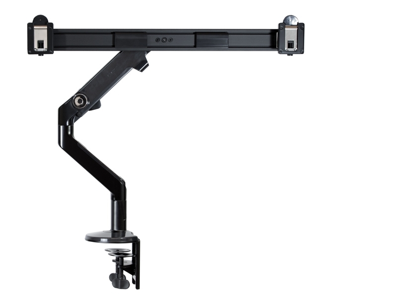 Die Humanscale M8 Dual-Tischbefestigung M8CB1C (Tischklemme) mit Schwenkarm Crossbar, schwarz ist ein designtechnisches Meisterwerk, das die unnachahmliche Nachhaltigkeit von Humanscale mit einer hohen Tragkraft kombiniert.