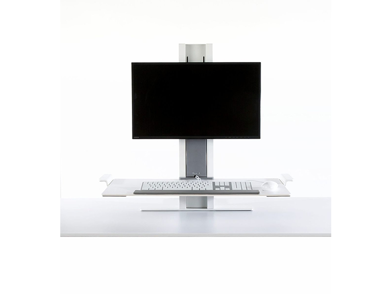 Und das Beste ist, ein dynamischer Steh Sitz Arbeitsplatz ist mit dem Humanscale Monitorständer QSBL24 leicht eingerichtet. Die Monitorhalterung ist dabei platzsparend und bietet Ihnen noch genug Arbeitsfläche für Papierarbeit oder andere Gerätschaften.