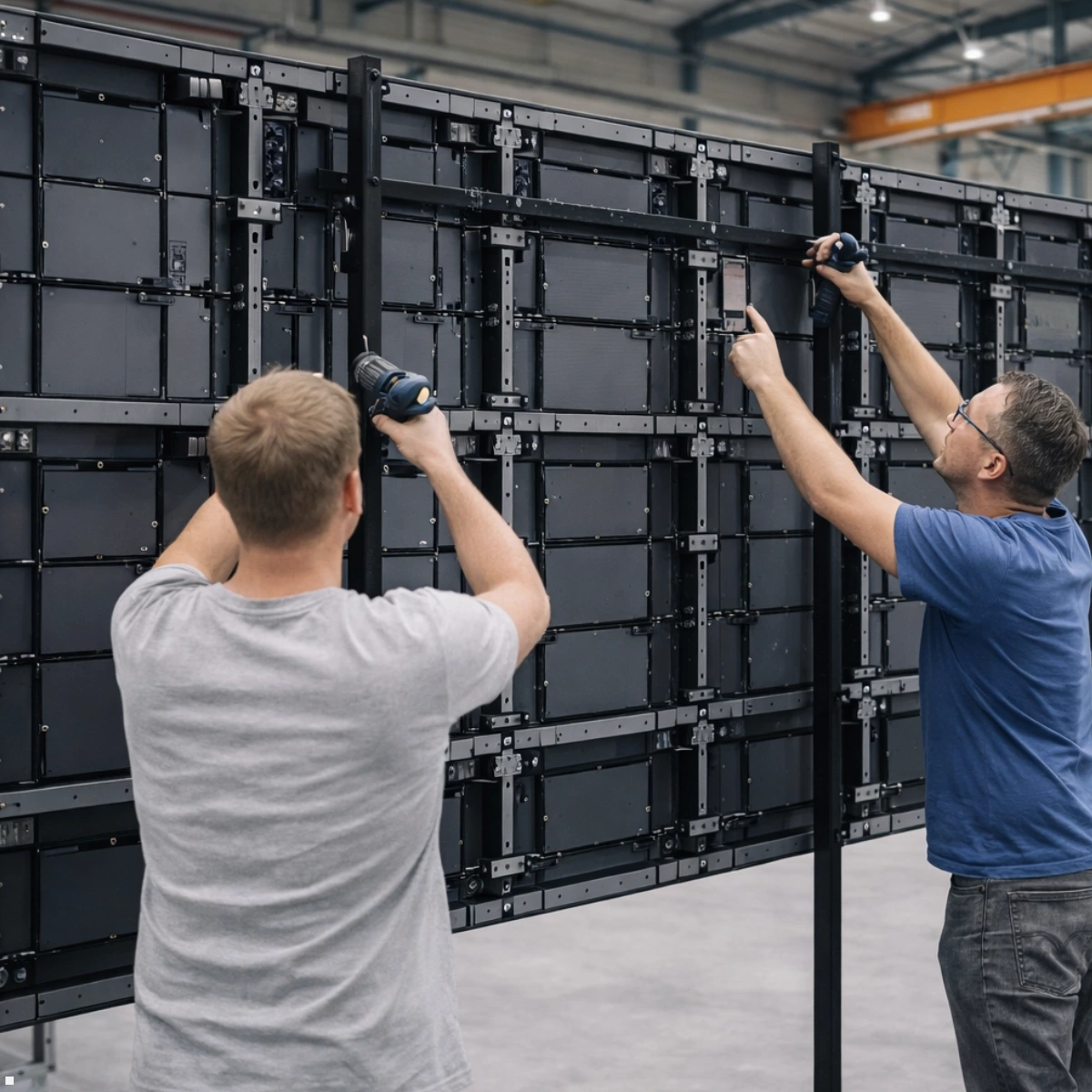 LED Cabinets sind die modularen Bausteine moderner LED Videowalls. Jedes Cabinet besteht aus einem stabilen Gehäuse, in dem LED-Module, Netzteile, Steuerungseinheiten und Signalverbindungen integriert sind. Durch ihre präzise Fertigung lassen sich die einzelnen Panels exakt aneinanderfügen. Das Ergebnis ist ein homogenes, rahmenloses Gesamtbild mit gleichmäßiger Helligkeit und hoher Bildqualität. LED Cabinets ermöglichen nahezu beliebige Formate und Größen und sind damit die Grundlage für flexible, skalierbare Videowall-Lösungen. - Warum ist die richtige Halterung für LED Cabinet Panels entscheidend?