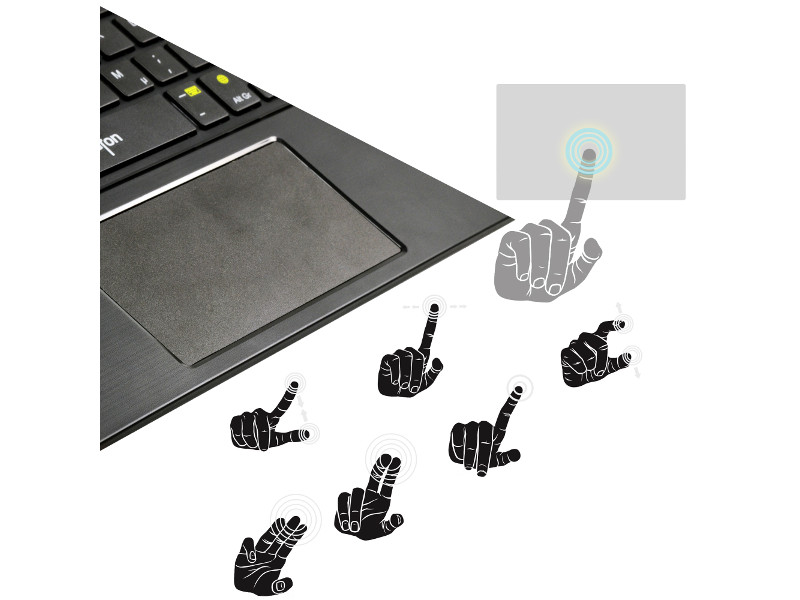 - Rechtsklick: Kurz zweimal mit zwei Fingern gleichzeitig auf das Touchpad tippen. Die Aktion entspricht einem Klick mit der rechten Maustaste.