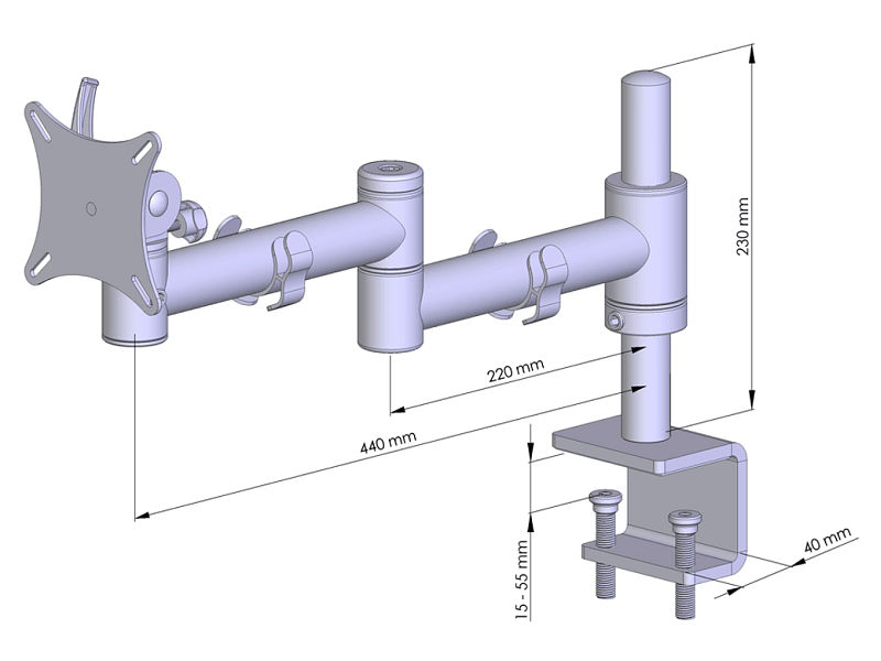 Technische Details MonLines TFT-Vario Tischhalterung Klemmbefestigung