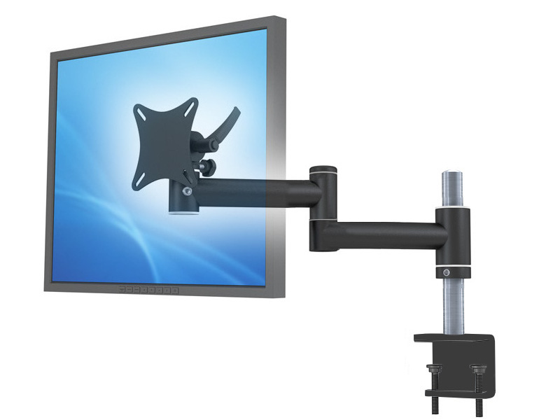 Die Monitorhalterung MonLines TFT-Vario Tischhalterung Klemmbefestigung in schwarz RAL 9011 befestigt Ihren Monitor per Klemme am Tisch. Der Monitor Doppelschwenkarm verfügt über eine Tragkraft von 20 kg mit VESA Standard 75x75 und 100x100mm.