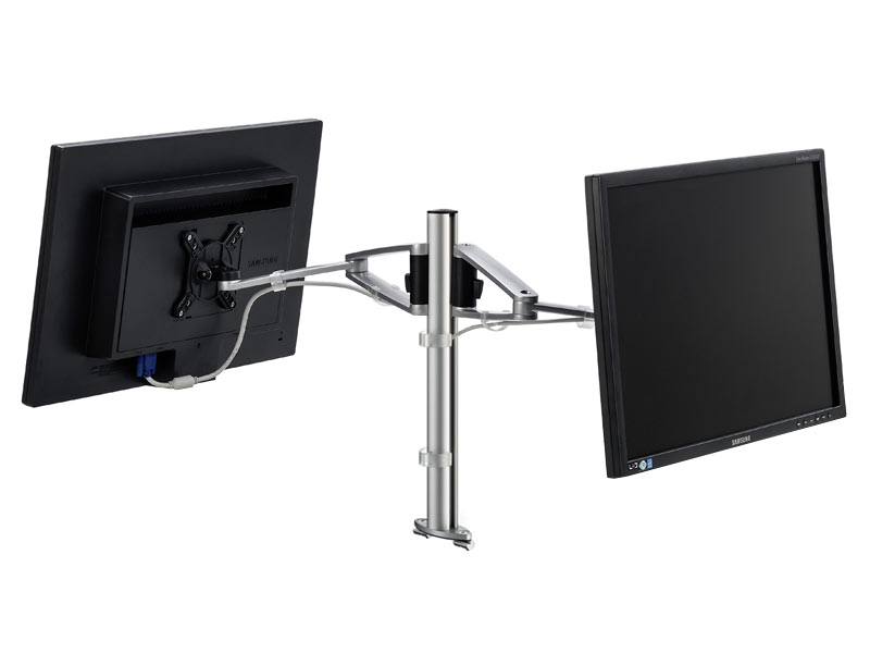 Der Novus MY twin arm S Dual-Monitorarm für Systemschiene (910+2169+000) ist Set aus MY base und 2x MY arm – ansprechende Optik mit maximaler Flexibilität und Effizienz bei der Positionierung von 2 Monitoren – nebeneinander oder gegenüberliegend.
