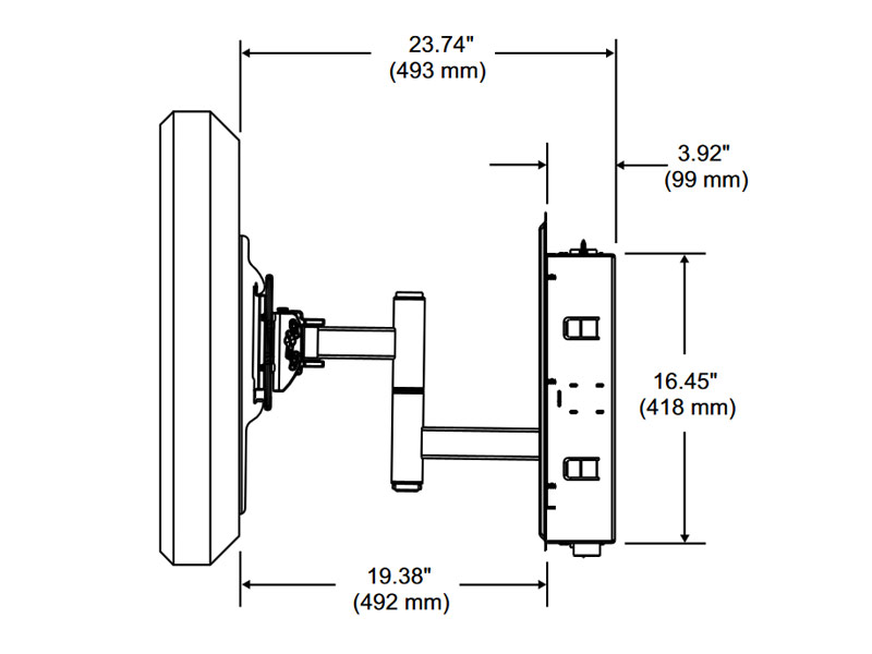 Der Monitor ist in Ruheposition ganz im Einsatz eingelassen. Wird der Schwenkarm ausgezogen kann der Bildschirm in diverse Blickrichtungen (+/- 45 Grad) geschwenkt und geneigt (+10°/-5°) werden. Die peerless IM740P bewegliche Flachbildschirm Wandmontage befestigt Screens ganz flach an der Wand und bietet zugleich Bewegungsfreiheit. Ein Paradox dass mit dem peerless Flaschbildschirm Wandmontage-Set Realität wird.