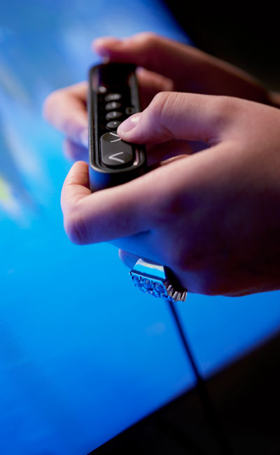 Durch motorisierte Neigungsfunktion, einstellbare Höhe und fahrbares Gestell werden die neuen Touchscreens mit SMS Touch VeriTable flexibler und leichter zu handhaben. Fernsteuerung mit Kabel.