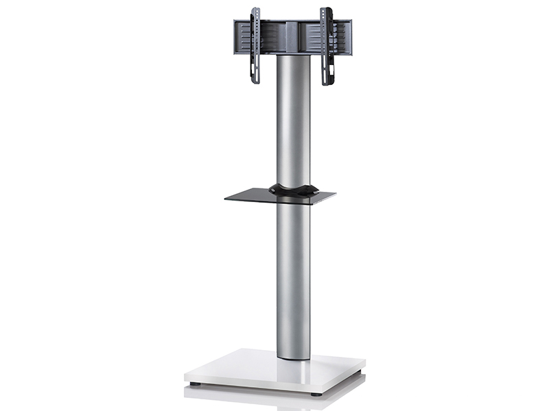 Der VCM TV Ständer Onu Weißlack mit Regal ohne Rollen ist eine Kombination aus hochwertiger gebürtester Aluminiumsäule und und schwarzen Bodenträger. Der clevere VCM Kabelkanal an der Rückseite macht die Kabel nahezu unsichtbar und sorgt für eine schöne Ordnung. Der Fernsehständer ist speziell entwickelt für den professionellen Einsatz in Hotels, Schulen, Arztpraxen, Konferenzräumen, Messen, Flughäfen, öffentlichen Einrichtungen, Autohäusern, Ausstellungsräumen etc..