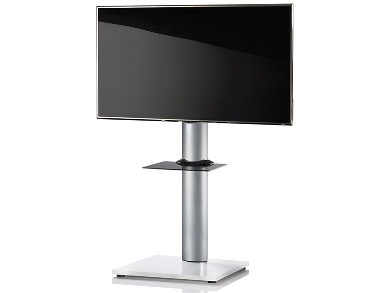 Der VCM TV Ständer Onu Weißlack mit Regal ohne Rollen ist eine Kombination aus hochwertiger gebürtester Aluminiumsäule und und schwarzen Bodenträger. Der clevere Kabelkanal an der Rückseite macht die Kabel nahezu unsichtbar und sorgt für eine schöne Ordnung.