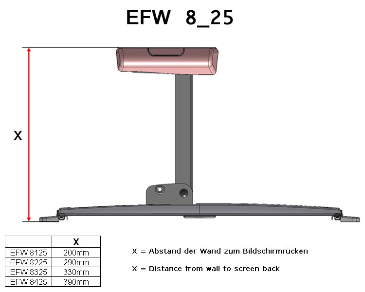- Abstand von der Wand bis zur Rückseite Bildschirm 330 mm