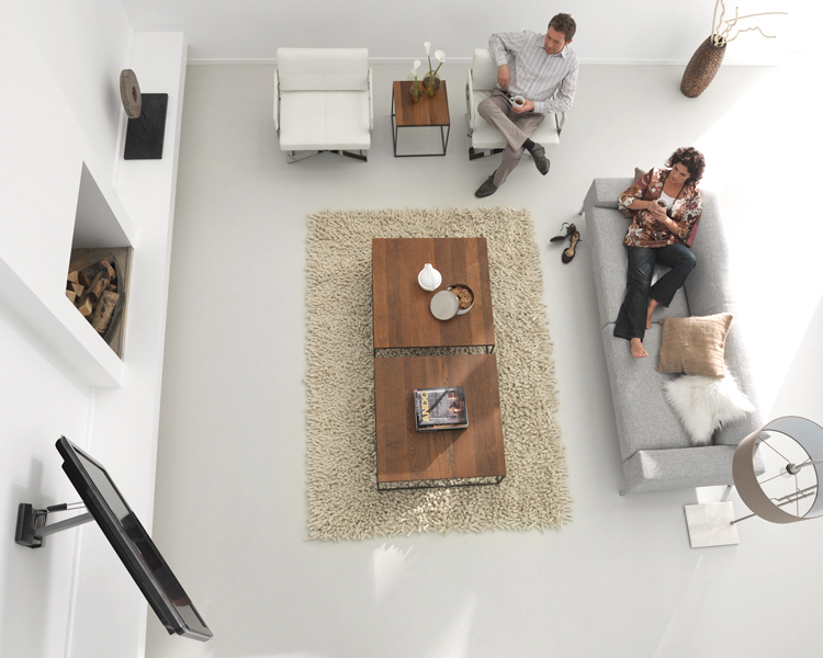 Wenn Sie das volle Heimkinoerlebnis wollen, sollten Sie direkt vor dem Fernseher sitzen, statt ihn aus einem Winkel zu betrachten. Mit der Wandhalterung Serie Vogels 8000 Motion lässt sich Ihr Fernseher für beste Sicht bewegen. Sie können ihn um 45° in beide Richtungen drehen, damit Sie immer beste Sicht haben. Dank dem patentierten Smart Movement Mechanism (SMM®) bewegen Sie auch den größten Flachbildschirm durch Antippen mit der Fingerspitze. Die Installation ist ganz einfach. Sogar eine Wasserwaage befindet sich im Halter, damit er wirklich absolut gerade hängt. Das clevere AutoLock® hält Ihren Bildschirm sicher in Position – über die Sicherheit Ihres wertvollen Fernsehers können Sie also unbesorgt sein. Realisieren Sie Ihre eigene Multimediazentrale durch Kombination mit dem Säulensystem aus der Serie 8000 und Audio/DVD-Multihaltern.