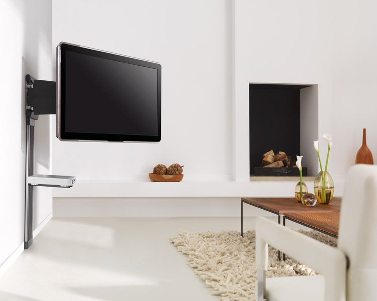 Dieser Halter bietet Komfort und Sicherheit. Mit dem Smart Movement Mechanism (SMM®) bewegen Sie auch den größten Flachbildschirm durch Antippen mit der Fingerspitze. Zugleich schützt das Screen Protection System (SPS®) Ihren Flachbildschirm davor, beim Drehen gegen die Wand zu stoßen. Mit dem Cable Inlay System (CIS®) verlegen Sie Ihre gesamten Kabel außer Sicht. Die Installation ist ganz einfach. Sogar eine Wasserwaage befindet sich im Halter, damit er wirklich absolut gerade hängt. Das clevere AutoLock® hält Ihren Bildschirm sicher in Position – über die Sicherheit Ihres wertvollen Fernsehers können Sie also unbesorgt sein. Realisieren Sie Ihre eigene Multimediazentrale durch Kombination mit dem Säulensystem aus der Serie 8000 und Audio/DVD-Multihaltern.