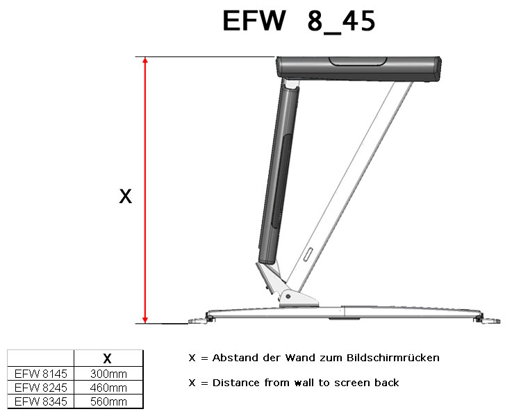 - Abstand von der Wand bis zur Rückseite Bildschirm 560 mm